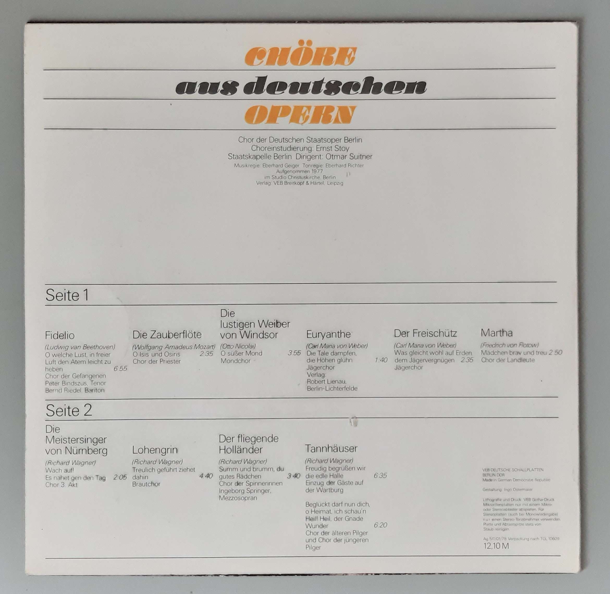 Chor Der Staatsoper Berlin – „Chöre Aus Deutschen Opern“ bei ebay