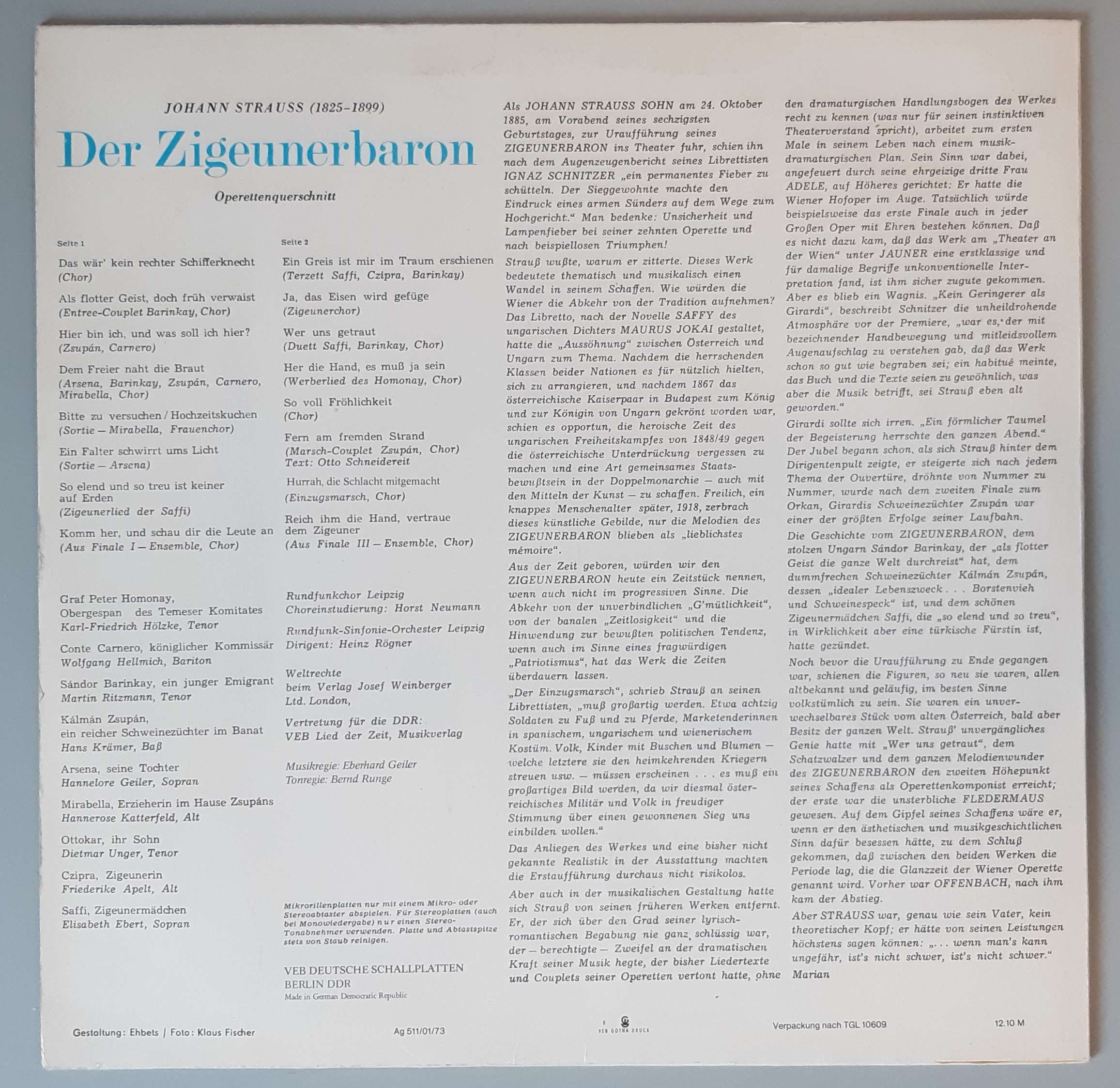 Johann Strauss – „Der Zigeunerbaron (Querschnitt)“ (AMIGA – 8 45 065)