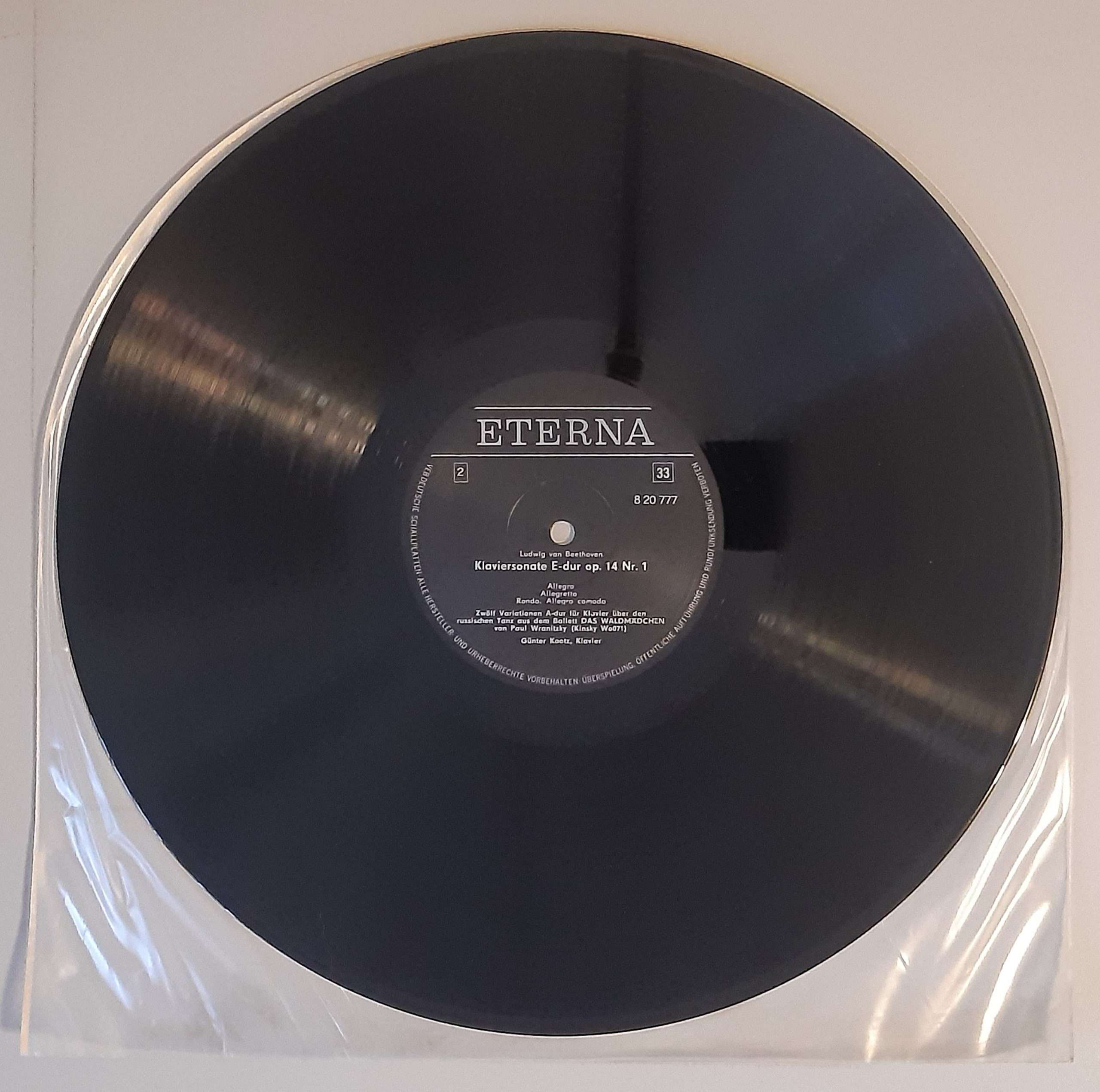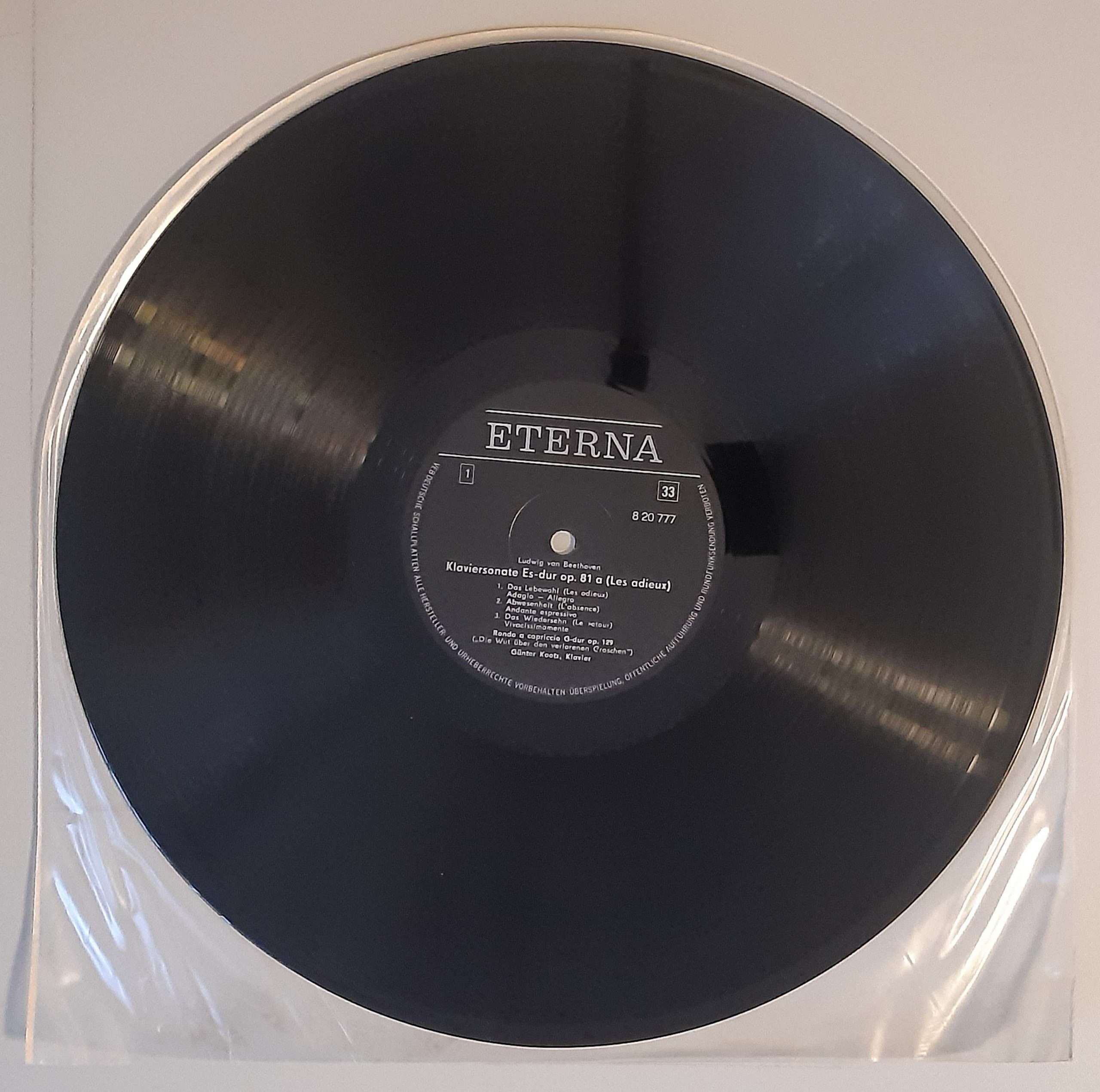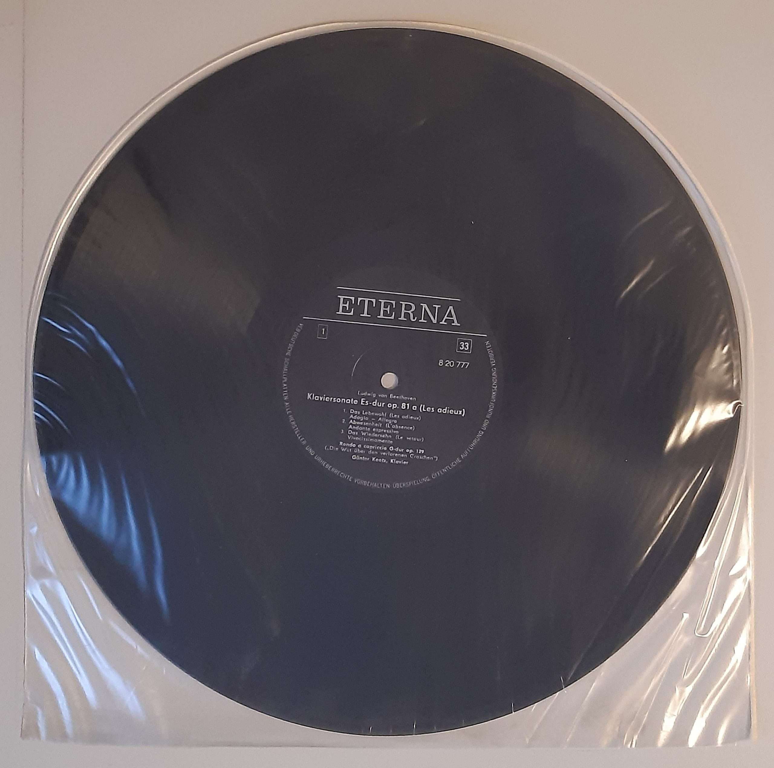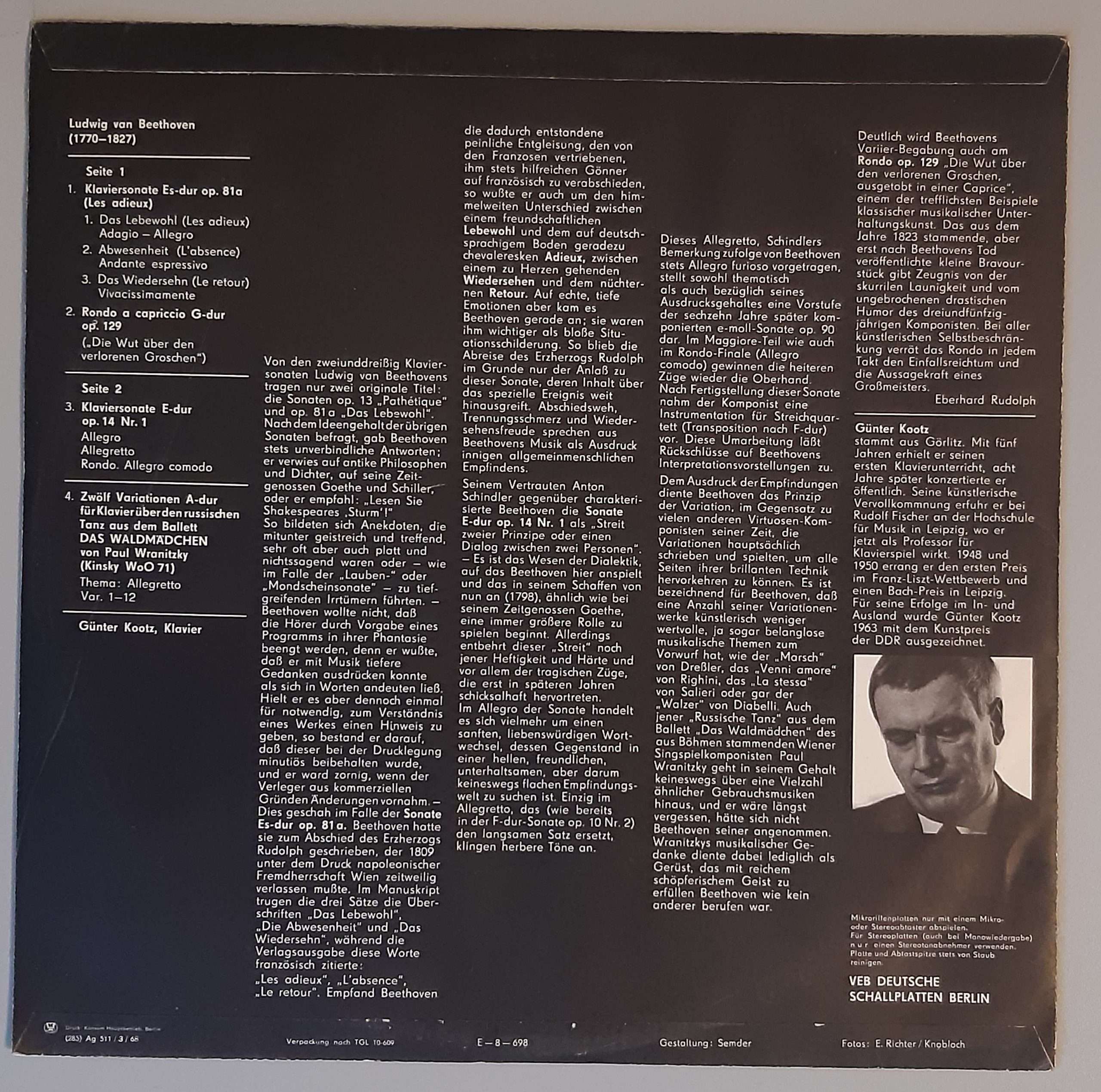 L. v. Beethoven „Klaviersonate Es-dur Op. 81a (Les Adieux) / Rondo A Capriccio G-dur Op. 129 (Die Wut Über Den Verlorenen Groschen) / Klaviersonate E-dur Op. 14 Nr.1 /Zwölf Variationen A-dur Für Klavier Über Den Russischen Tanz Aus Dem Ballett Das Waldmädchen Von Wranitzky (ETERNA – 8 20 777)
