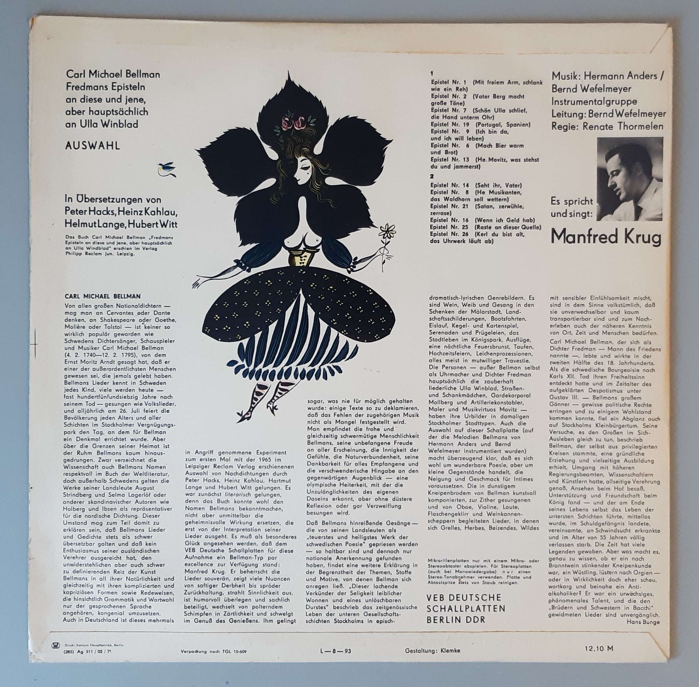 Manfred Krug Spricht Und Singt Carl Michael Bellman – Fredmans Episteln An Diese Und Jene Aber Hauptsächlich An Ulla Winblad (Auswahl) (LITERA – 8 65 137)