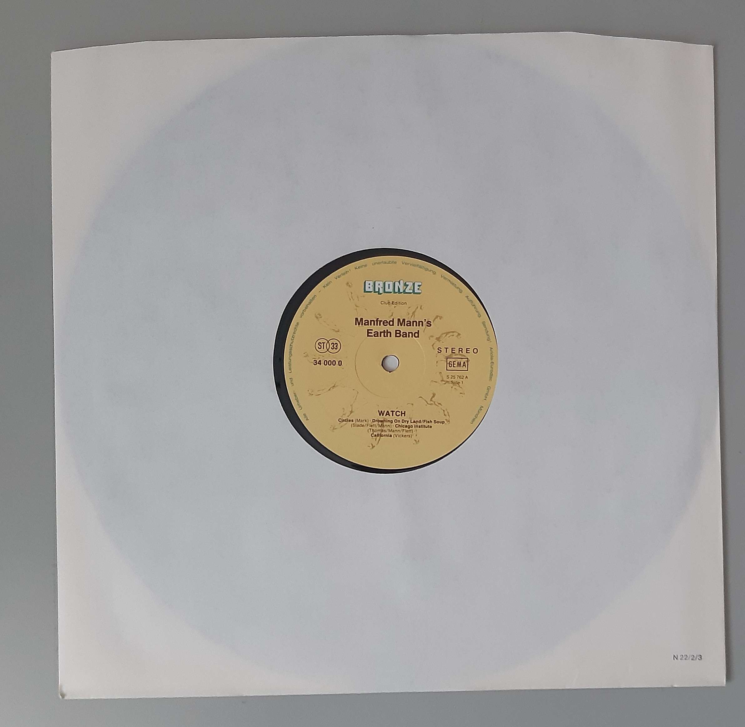 Manfred Mann`s Earthband– „Watch“ (Bronze Records – S 25 762)