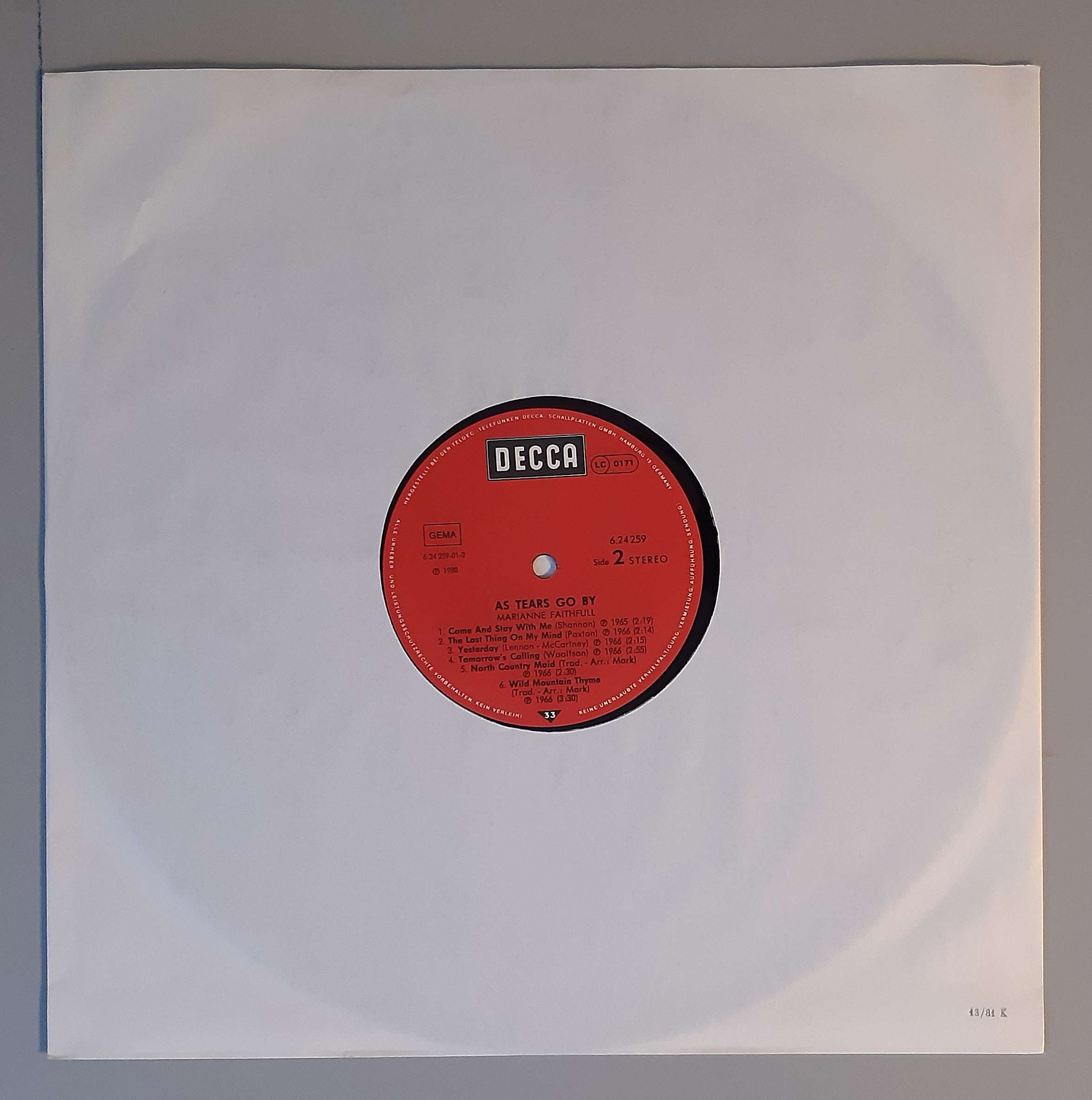 Marianne Faithfull – „As Tears Go By“ (Decca – 6.24259)