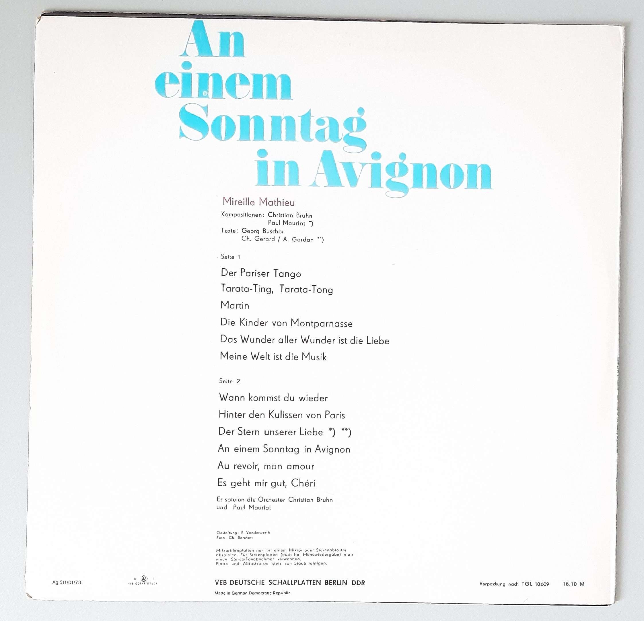 Mireille Mathieu – „An Einem Sonntag In Avignon“ (AMIGA – 8 55 259)