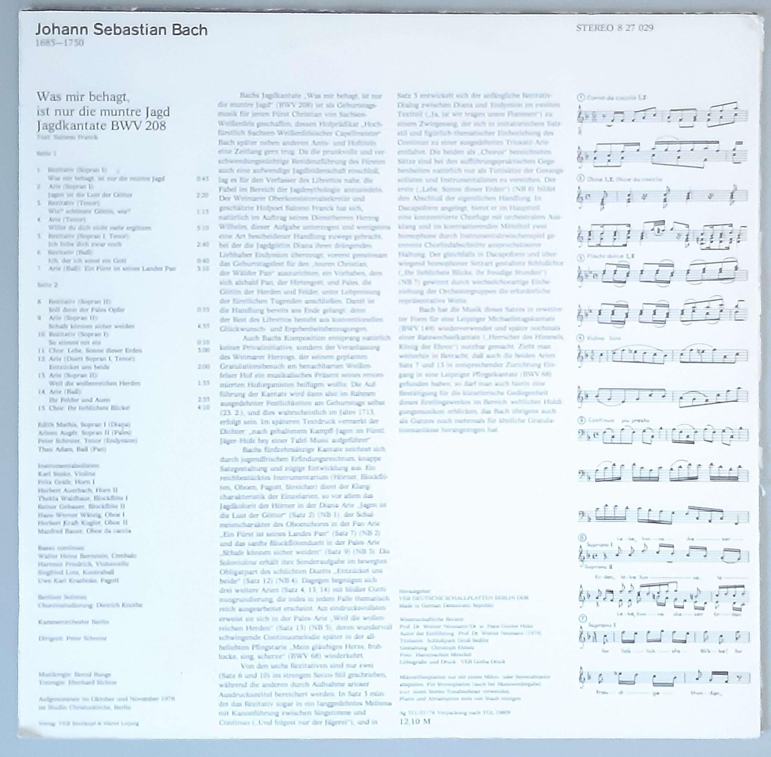 J. S. Bach – „Kantaten – Was Mir Behagt Ist Nur Die Muntre Jagd BWV 208“ (ETERNA – 8 27 029)