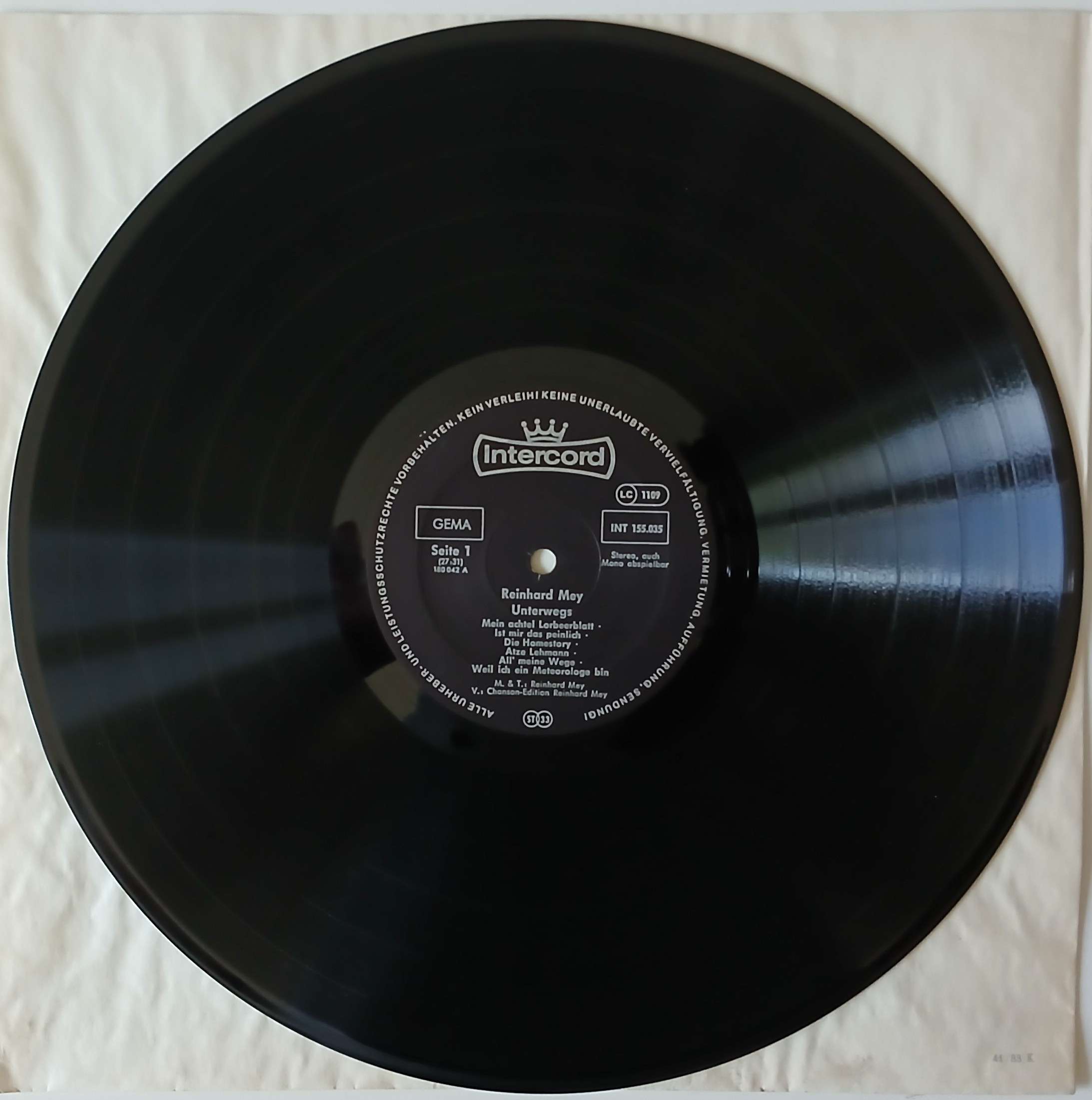 Reinhard Mey „Unterwegs“ (Intercord – INT 155.035)