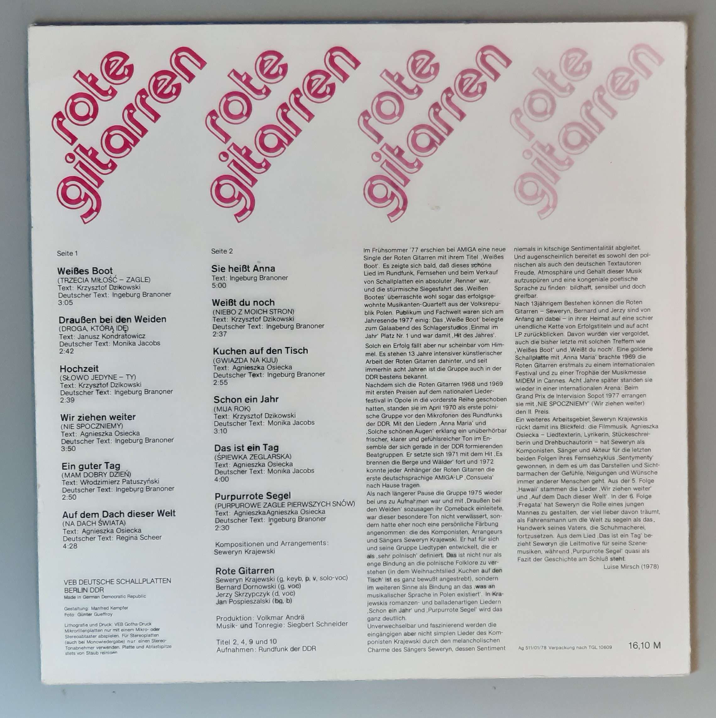 Rote Gitarren – „Rote Gitarren“ (AMIGA – 8 55 629)