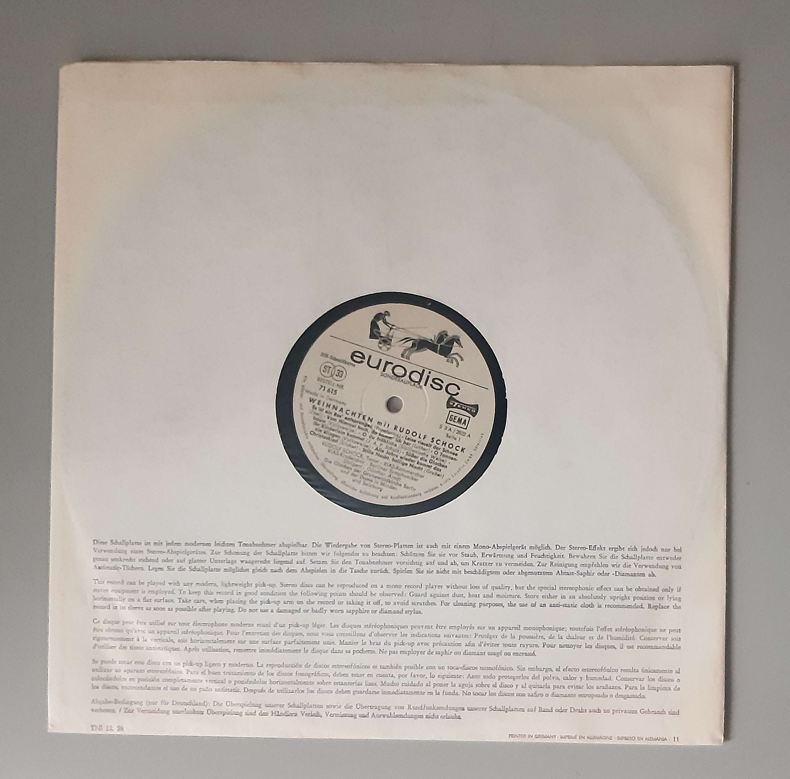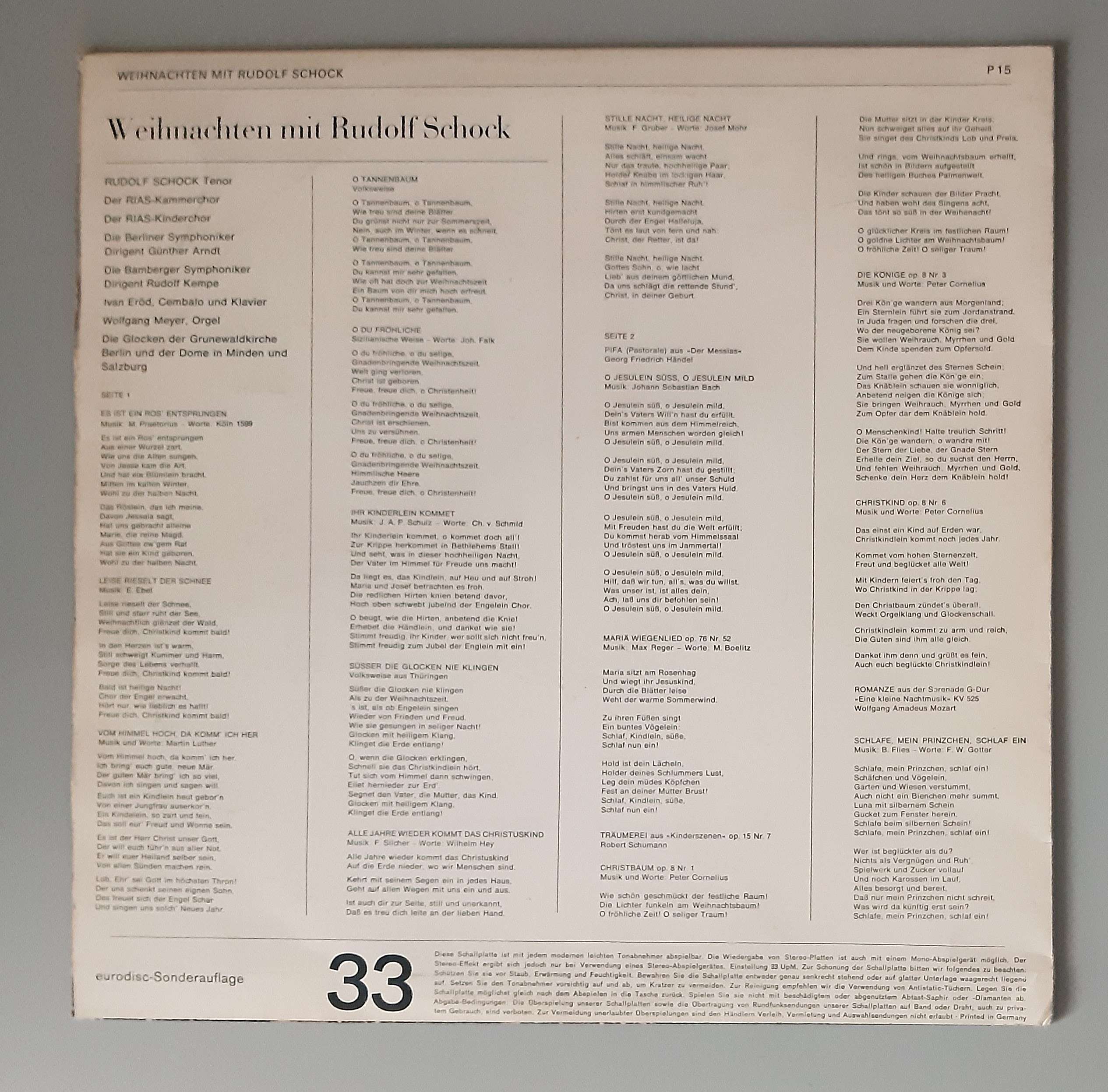 Rudolf Schock – „Weihnachten Mit Rudolf Schock“ (Eurodisc – 71 615)