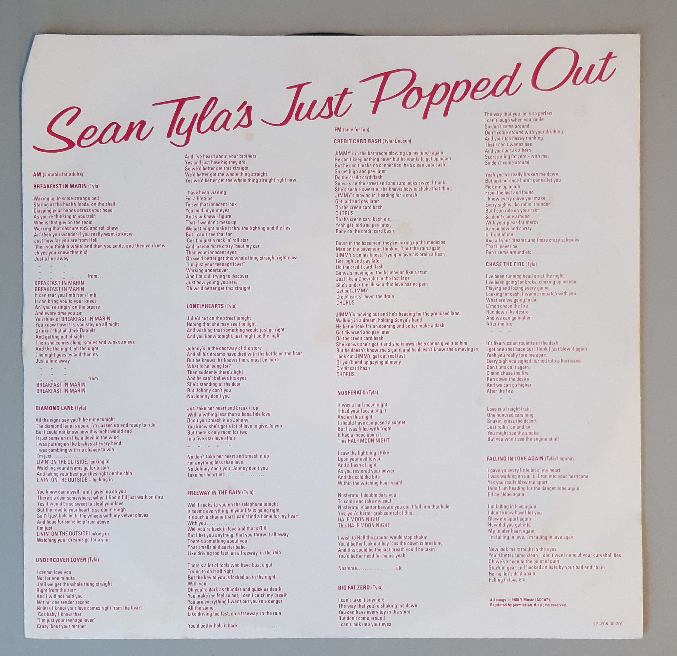 Sean Tyla – „Sean Tyla’s Just Popped Out“ (Line Records – 6.24508)