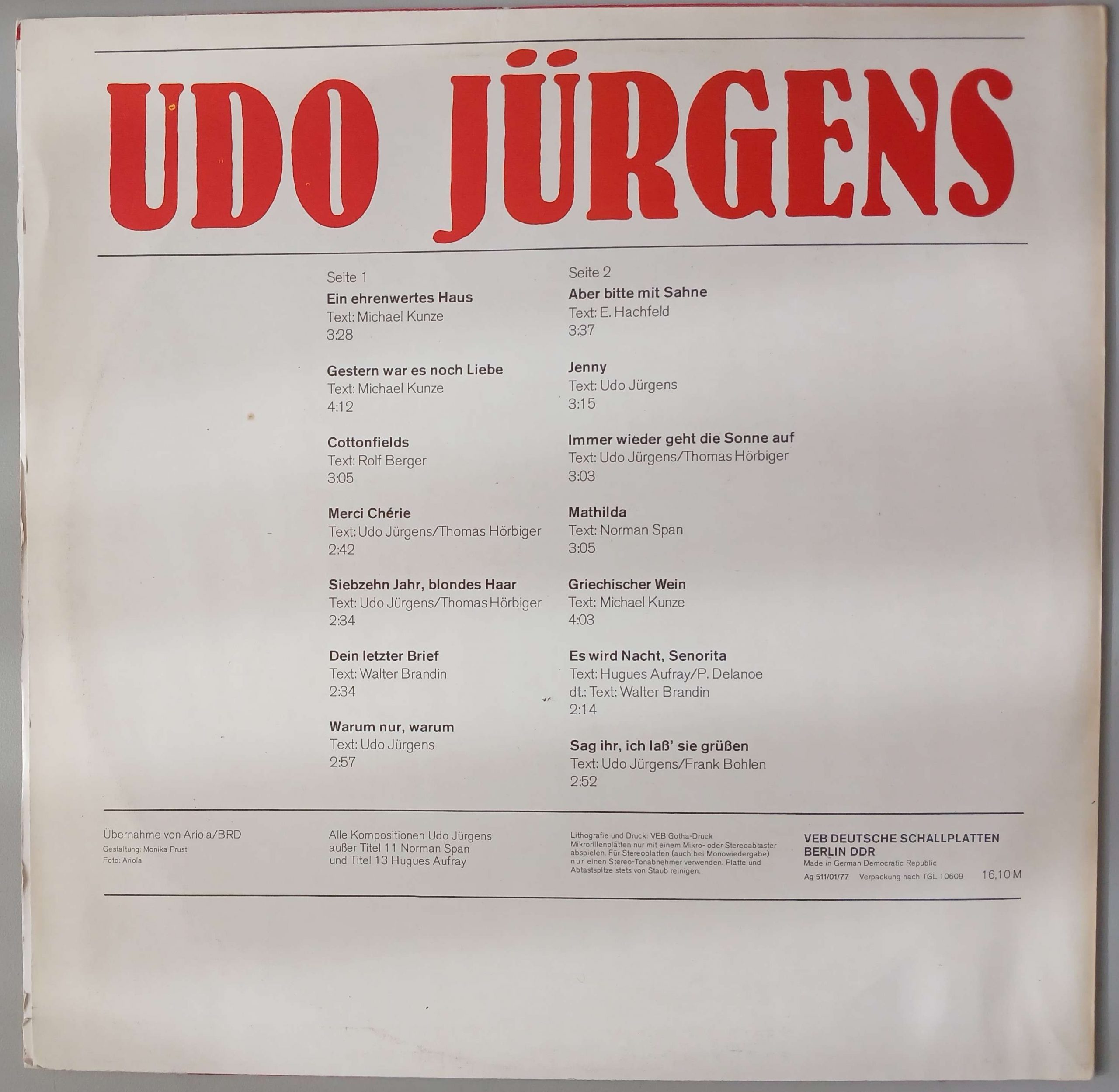 Udo Jürgens „Udo Jürgens“ (AMIGA – 8 55 521)