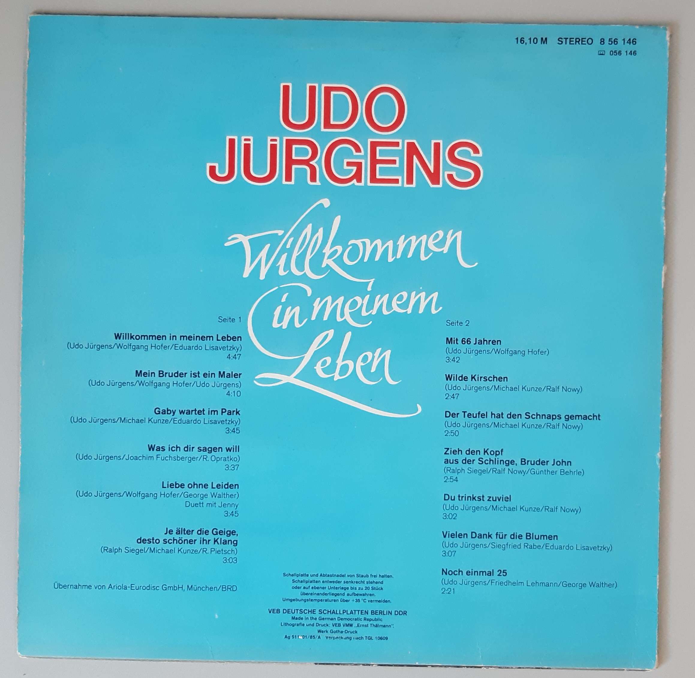 Udo Jürgens „Willkommen In Meinem Leben“ (AMIGA – 8 56 146)