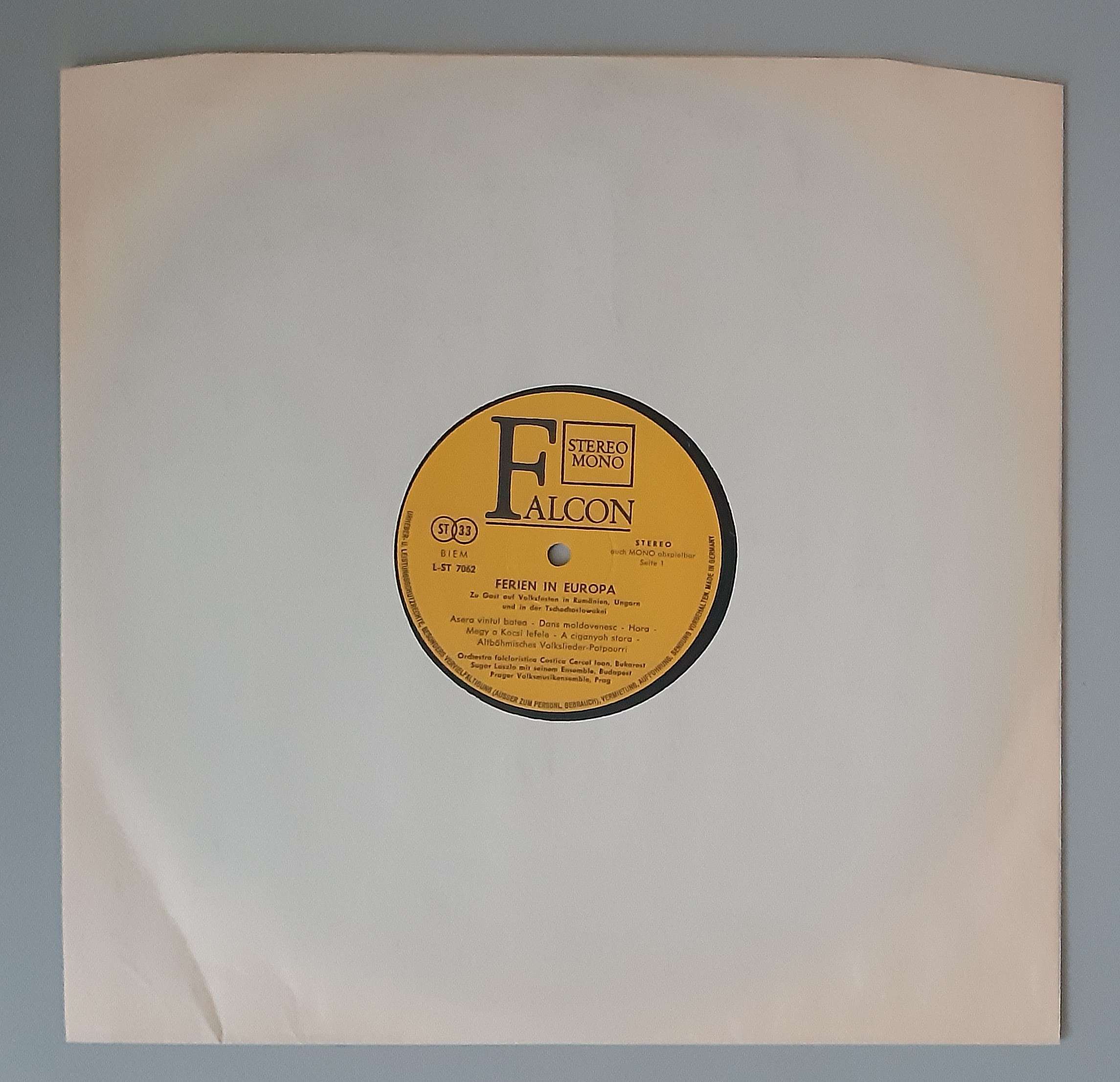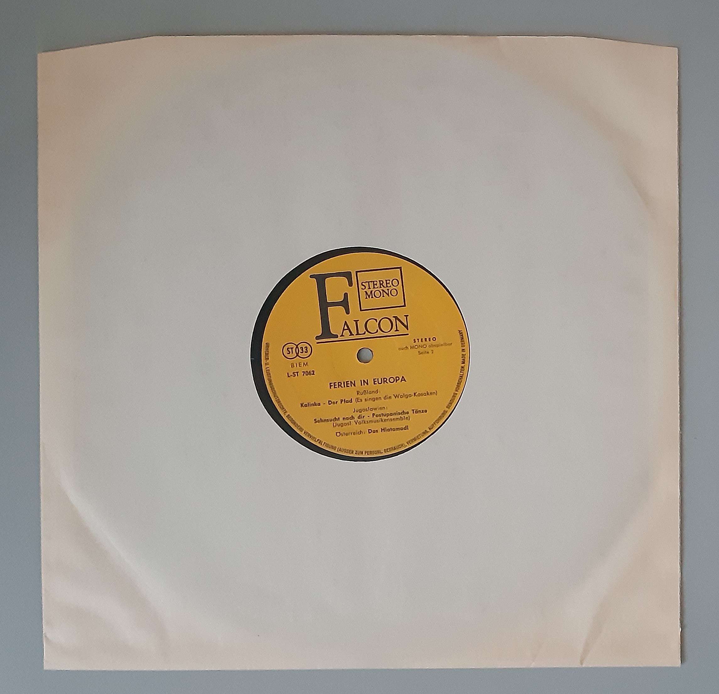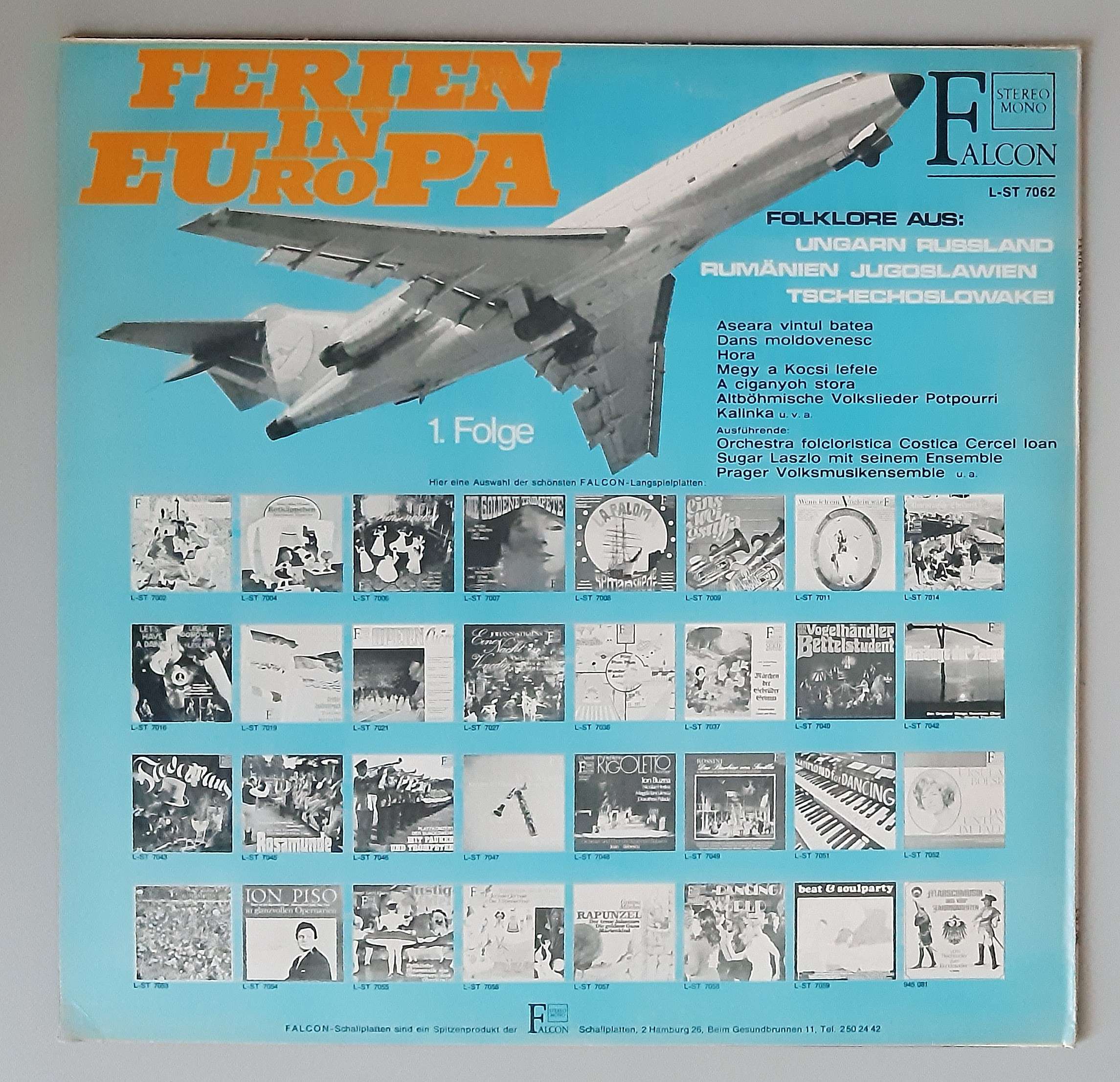 Various – „Ferien In Europa 1. Folge – Folklore Aus Ungarn Russland Rumänien Jugoslawien Tschechoslowakei“ (Falcon – L-ST 7062)