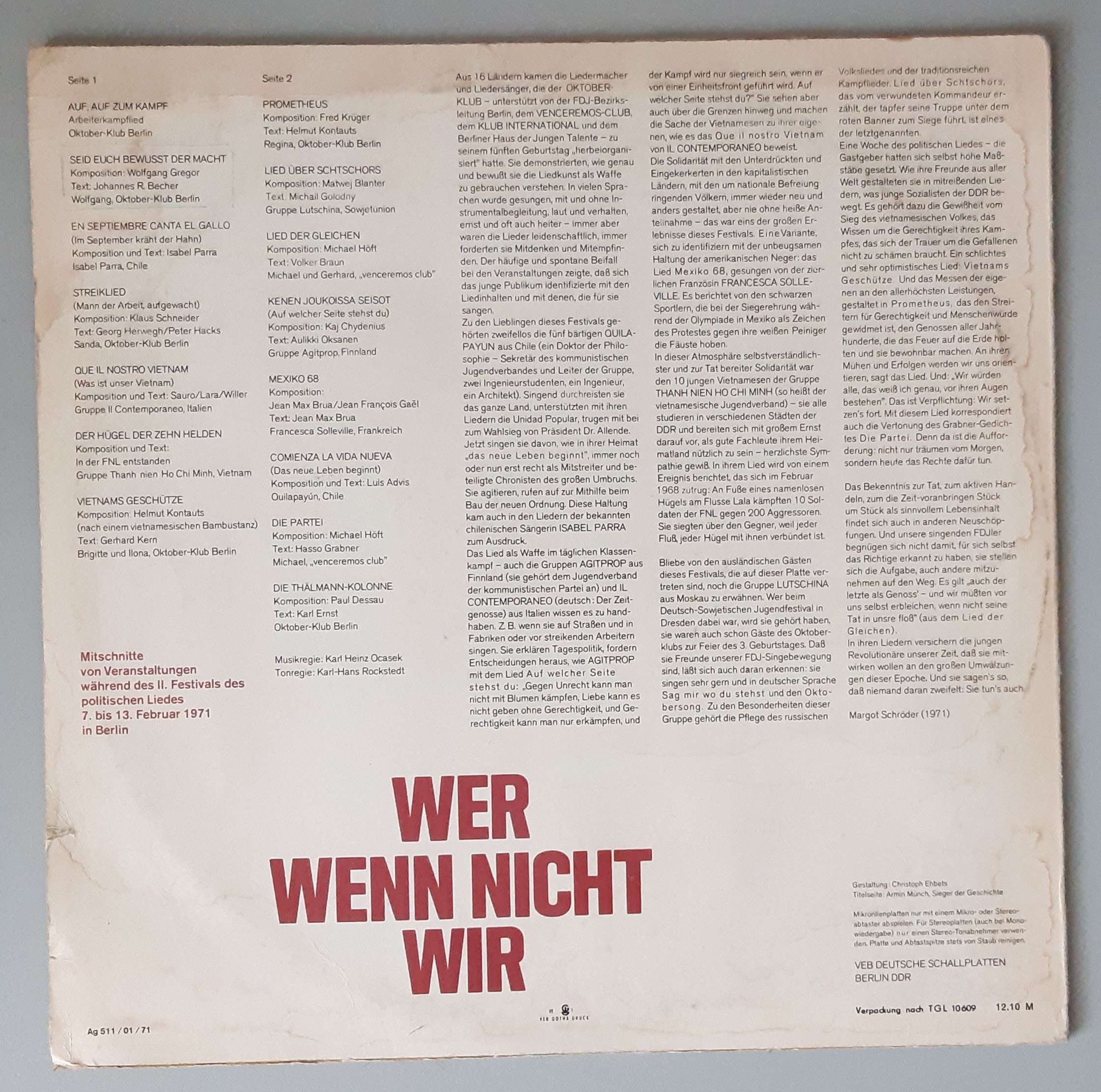 Various – „Wer, Wenn Nicht Wir (2. Festival Des Politischen Liedes)“ (ETERNA – 8 15 060)