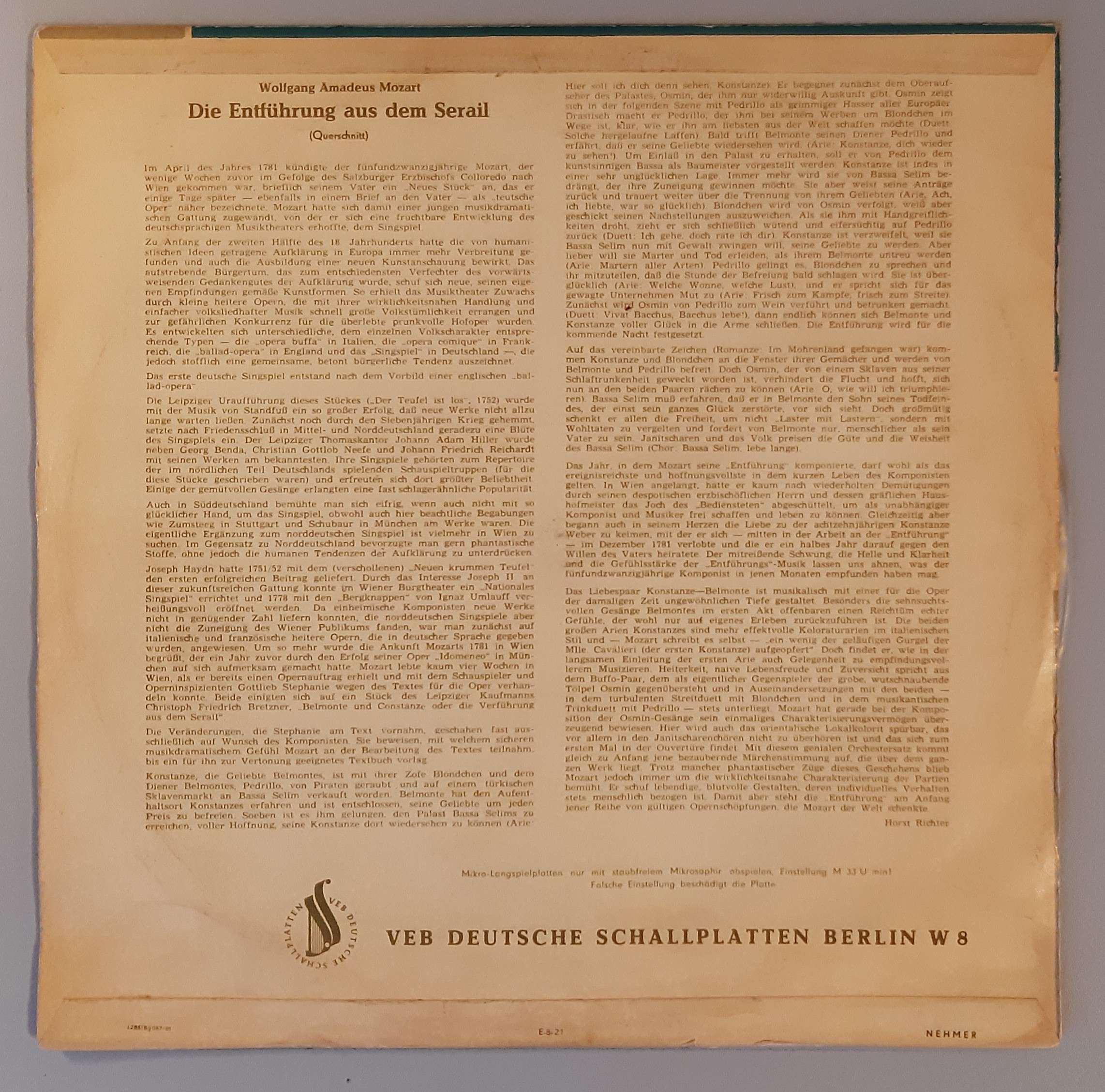 Wolfgang Amadeus Mozart – „Die Entführung Aus Dem Serail (Querschnitt)“ (Eterna 8 20 039)