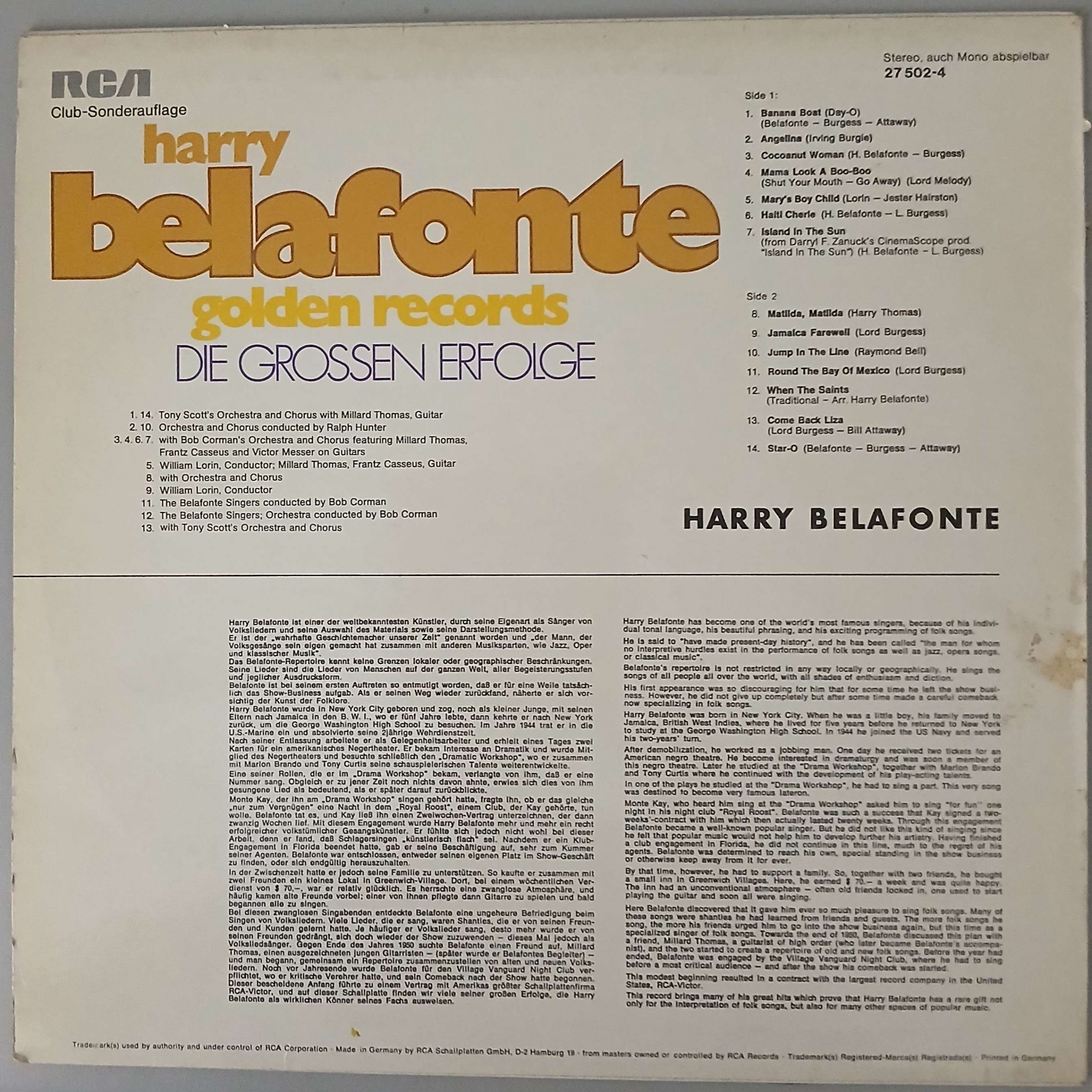 Harry Belafonte – „Golden Records“ (RCA – 27 502-4