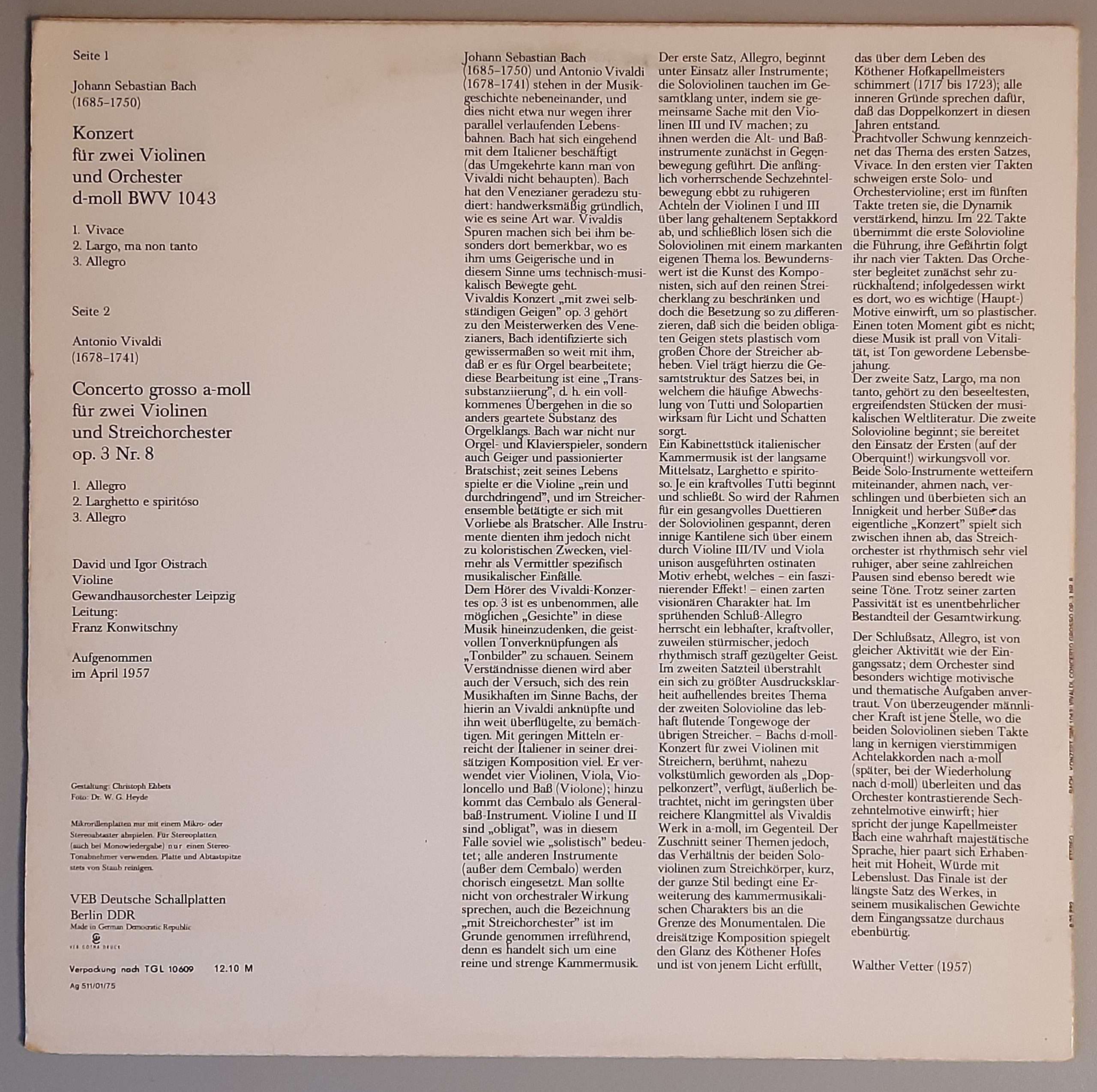 „Konzert Für Zwei Violinen Und Orchester D-moll BWV 1043“ bei ebay